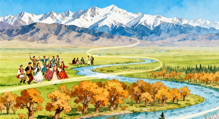 Anlässlich des 70-jährigen Jubiläums der Gründung des Uigurischen Autonomen Gebiets Xinjiang in China hat die China Media Group (CMG) den politischen Dokumentarfilm „Gesang des Tianshan-Gebirg...