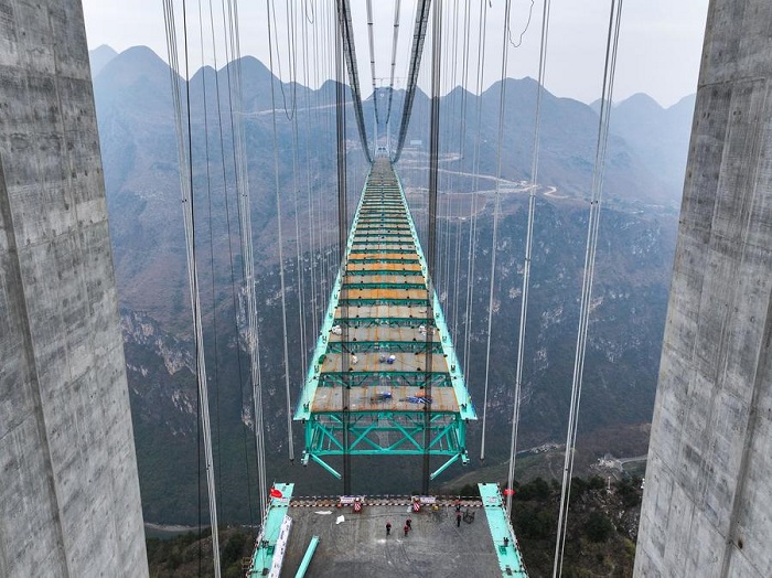 Die Huajiang Grand Canyon Bridge wird voraussichtlich in der zweiten Hälfte dieses Jahres eröffnet.