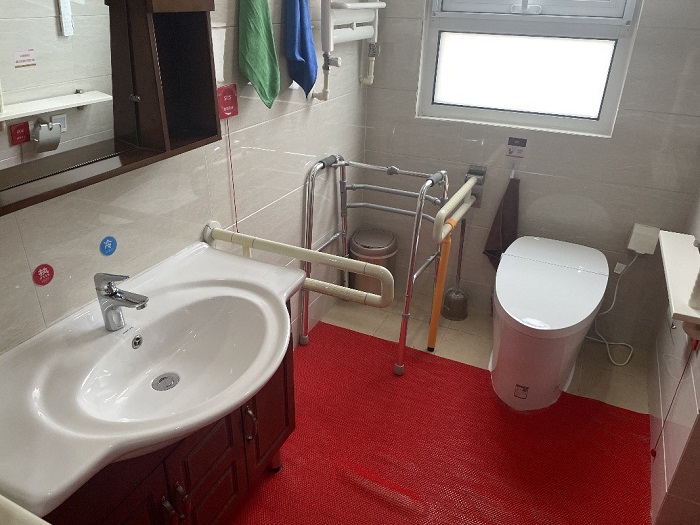 Ein sicheres Gefühl zuhause: Ein altersgerechtes Badezimmer mit Sicherheitsausstattung (Foto: Wang Ruying)