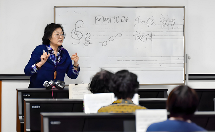 Gesangsunterricht vom Profi: Diese an das Kulturzentrum des Bezirks Hexi in der Stadt Tianjin angeschlossene Seniorenuniversität geht beim Unterricht bewusst auf den Musikgeschmack älterer Semester ein.