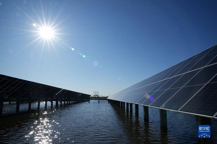 Dieses Foto vom 19. September 2023 zeigt einen Teil des Photovoltaik-Kraftwerks „Xinhuo“ über dem Wasser auf dem Daqing-Ölfeld von CNPC in Daqing, Heilongjiang. (Xinhua)
