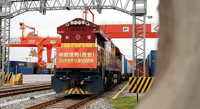 Bis heute hätten die Züge fast zwölf Millionen mit Gütern beladene Standardcontainer transportiert und bedienen nun 232 Städte in 26 europäischen Ländern sowie mehr als 100 Städte in elf as...
