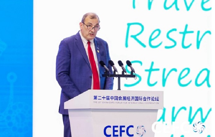 Ren Hongbin, Präsident des Chinesischen Rats für die Förderung des Internationalen Handels (CCPIT, China Council for the Promotion of International Trade) hält eine Rede auf der Eröffnungszeremonie des 20. China Expo Forum for International Cooperation (CEFC). (Foto mit freundlicher Genehmigung vom CEFC)